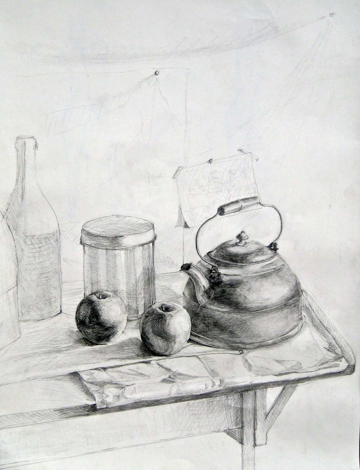 Drawing is more abstract than painting. In drawing, everything must be distilled to lines and planes, light and dark. With the abstraction, comes an imposed precision of craft. Lines are straight, constructed perspectives are more pronounced. In the absence of color, light is more pronounced. Light makes drawings feel real.